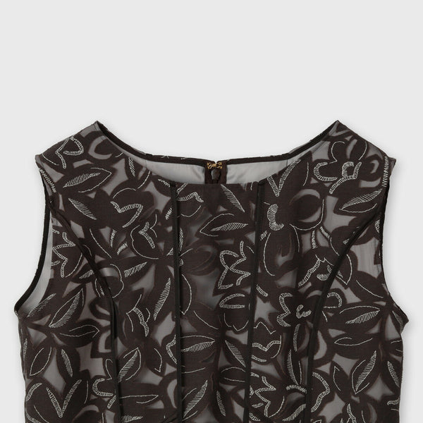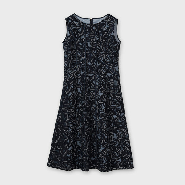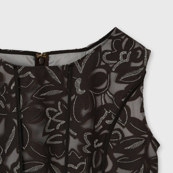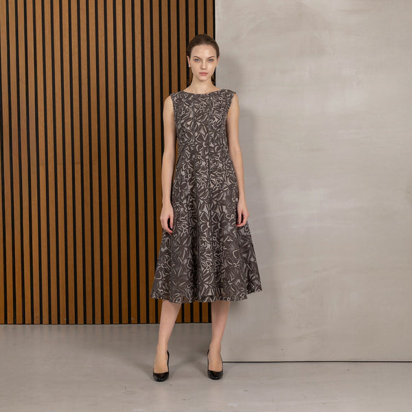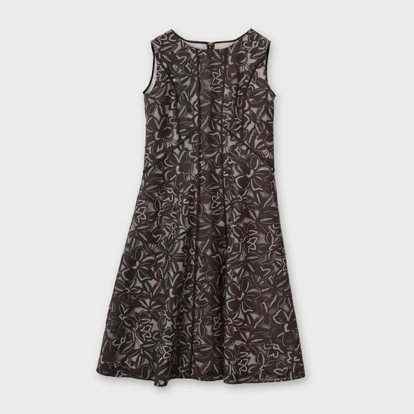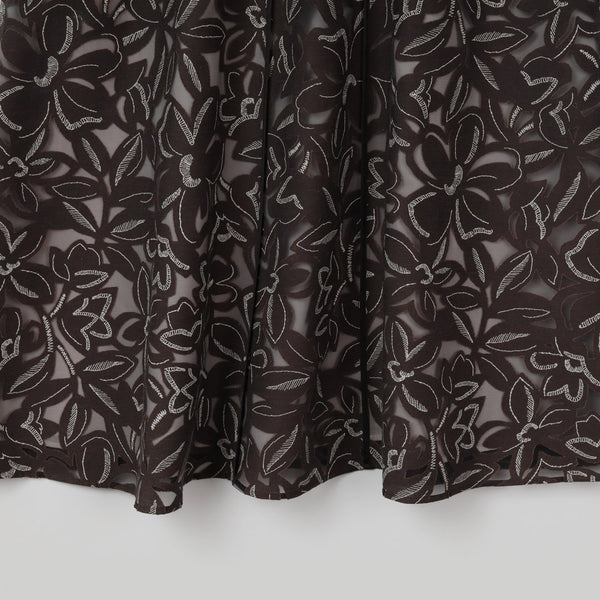 ウエストに横の切り替えの無いフィット&フレアのシルエット。