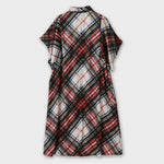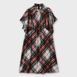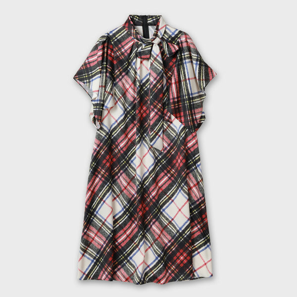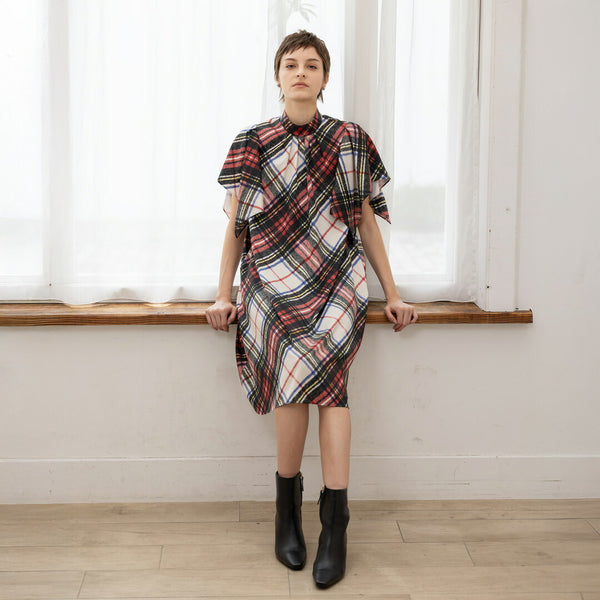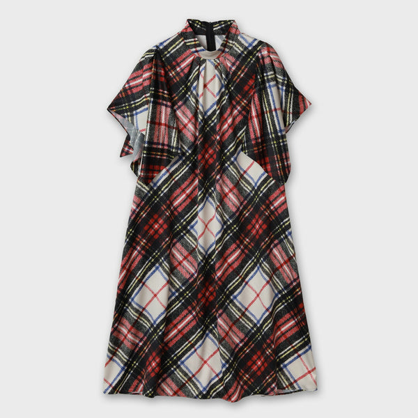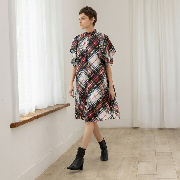 ワンピースは、袖がハンカチーフヘムラインがポイントのたっぷりとしたフレアーシルエットです。