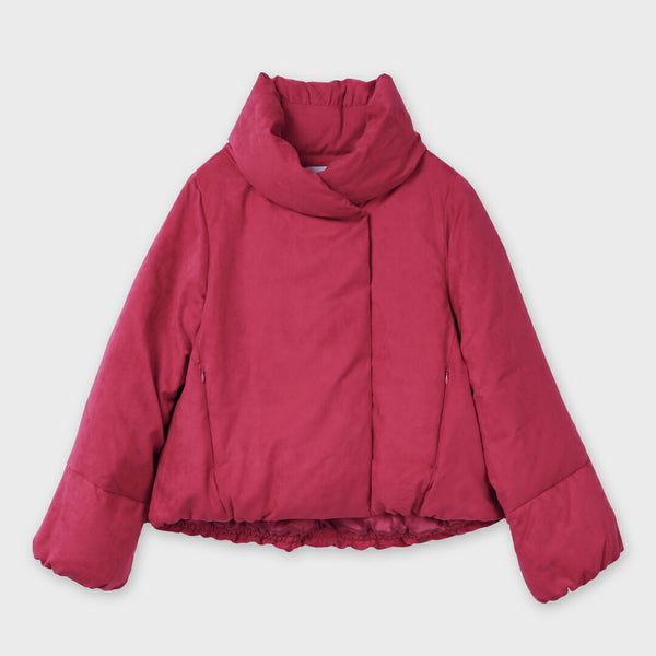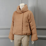 ショート丈の裾はふんわりとしたシルエットになるよう、内側にゴムを叩きつけました。
