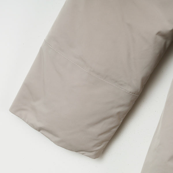 表のダウンパックのステッチをやめ、フラットに仕上げることで、スッキリとした印象になり、コーディネートの幅が広がります。