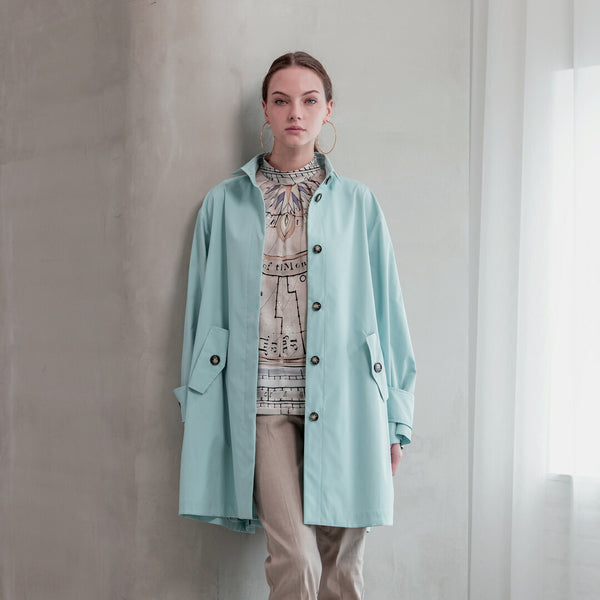 綺麗目なマット感と程よいストレッチ性を兼ね備えた素材を使用した、クラシックな佇まいが魅力のトレンチコート。