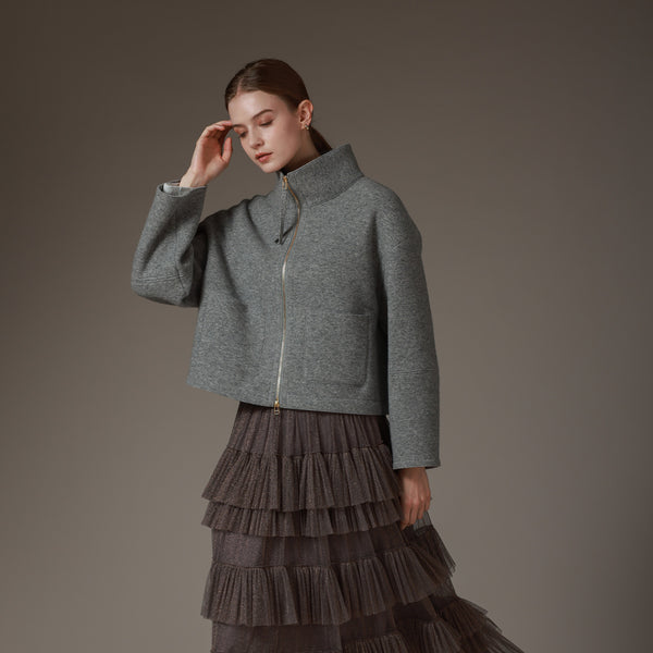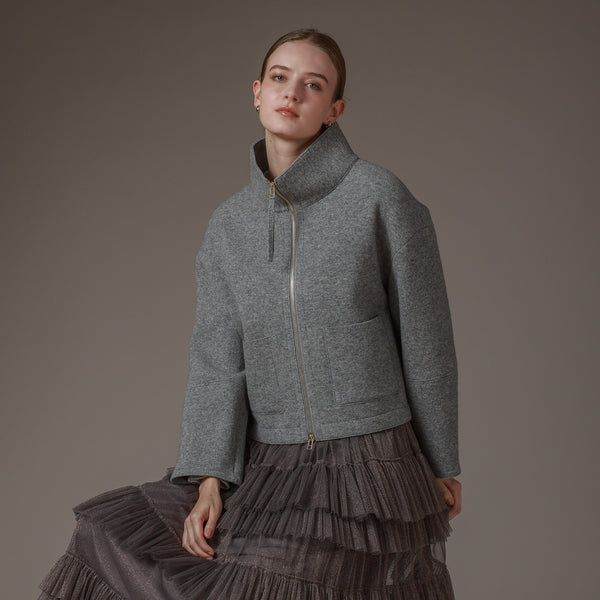 WO編地に縮絨をかけた、フェルト素材のブルゾンです。