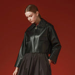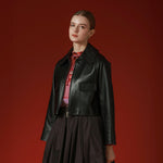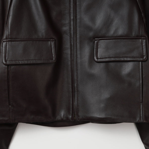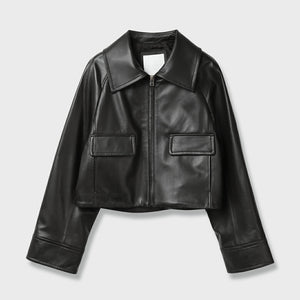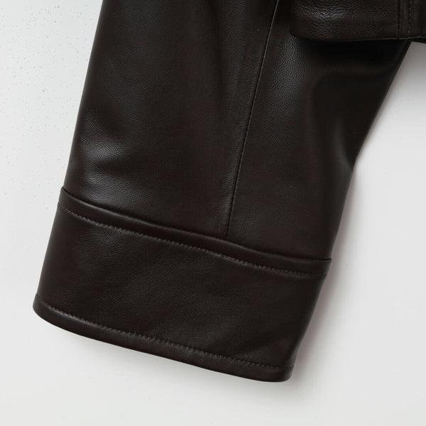 ライダースより柔らかいデザインにすることで、レザーのハードなイメージは和らぎ、エレガントなアイテムともバランス良くコーディネートして頂けます。