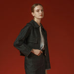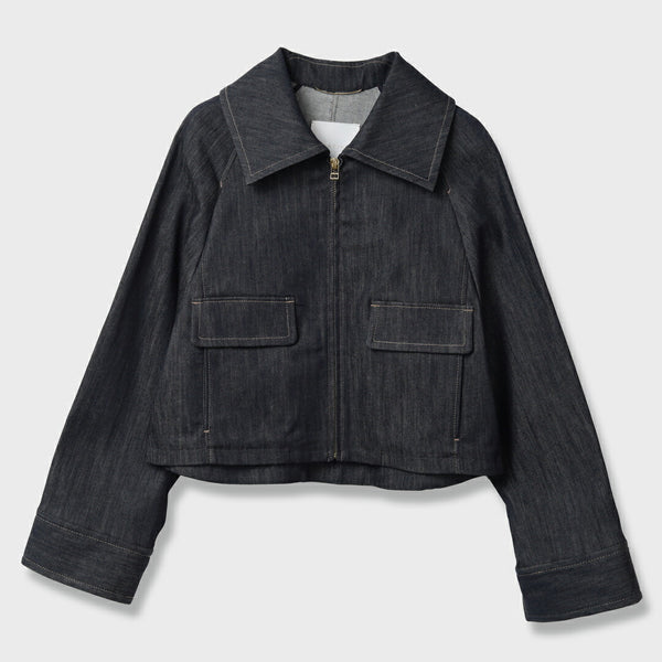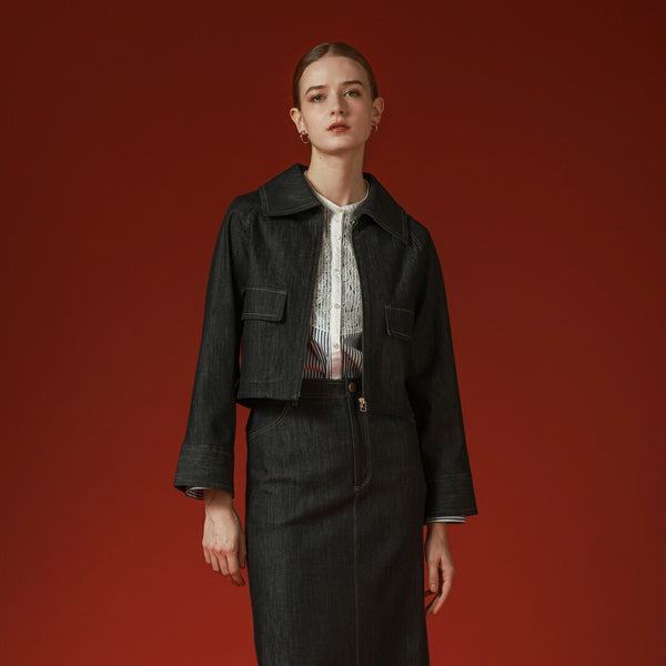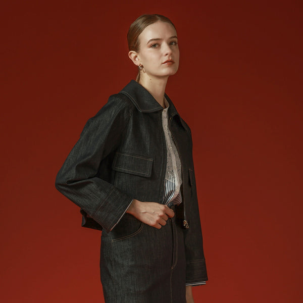 トレンドの大き目の衿がポイント。お顔を小さく見せてくれます。