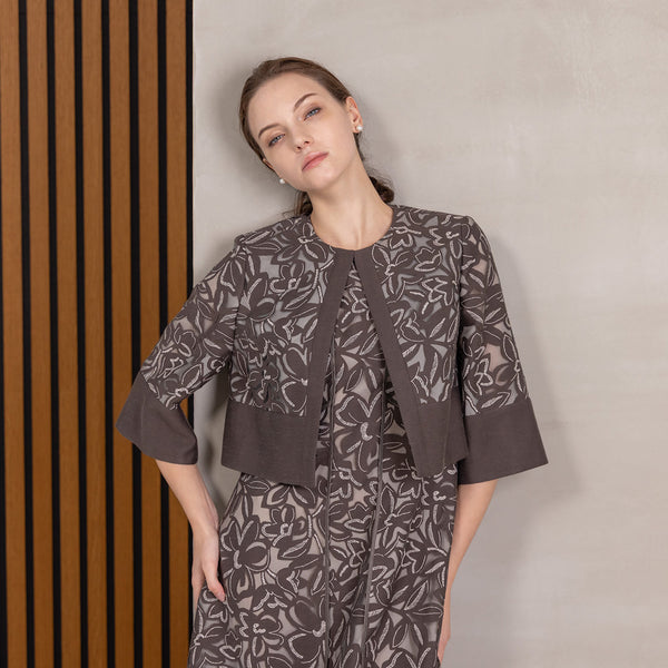 昨年ご好評頂いた、ワンピースと同素材のジャケットをアップデート。