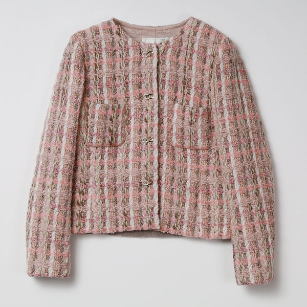 様々な意匠糸で作られた美しいバランスのチェック柄のイタリアツィード素材。