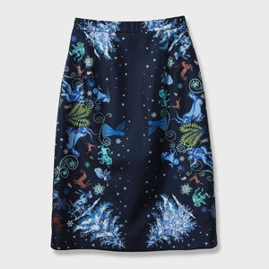 こちらのタイトスカートは、両端のクリスマスツリーの柄をメインに、スッキリとしたシルエットに仕上げました。