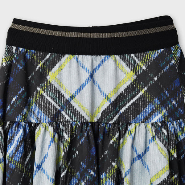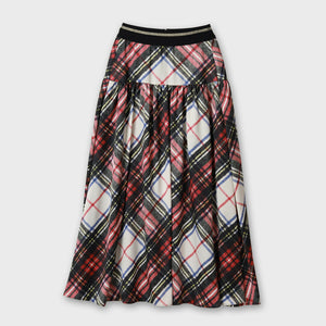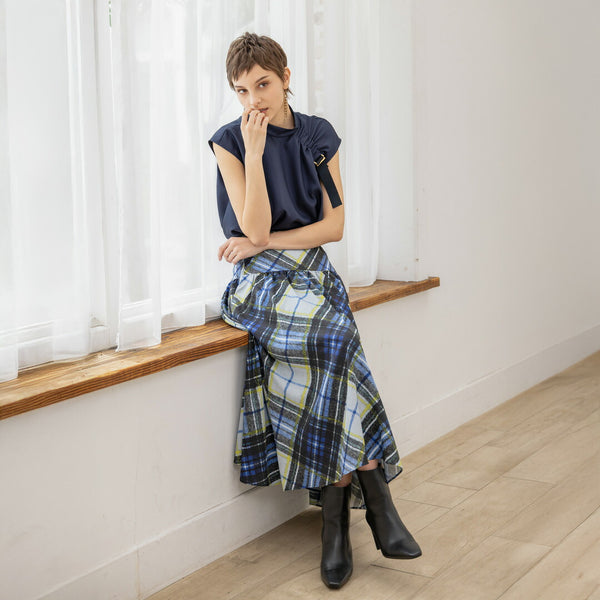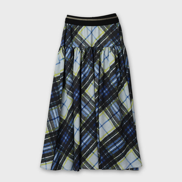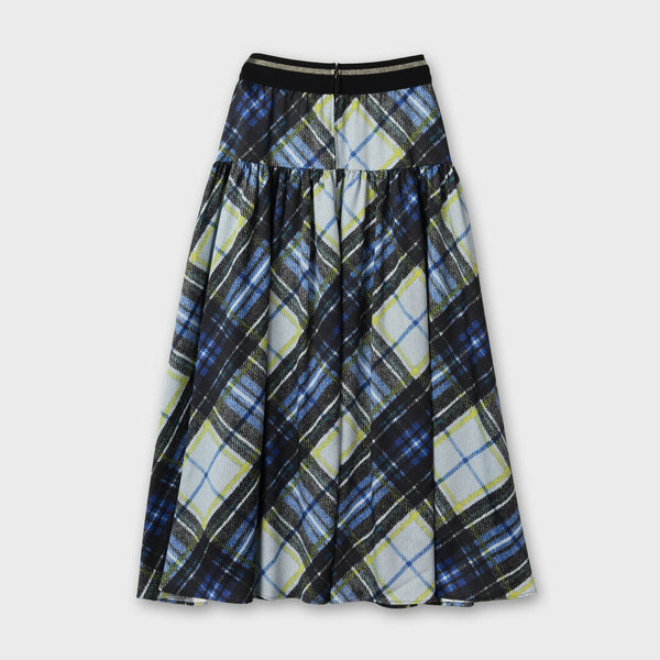 ウエストラインがスッキリ見えるラインに細かいギャザーをよせた少し長めのティアードスカートです。