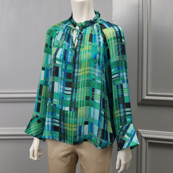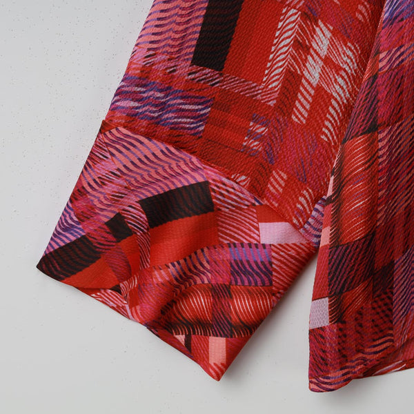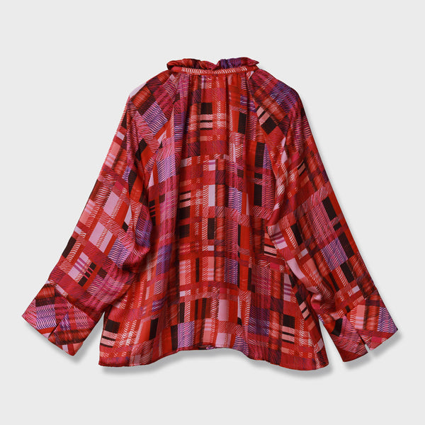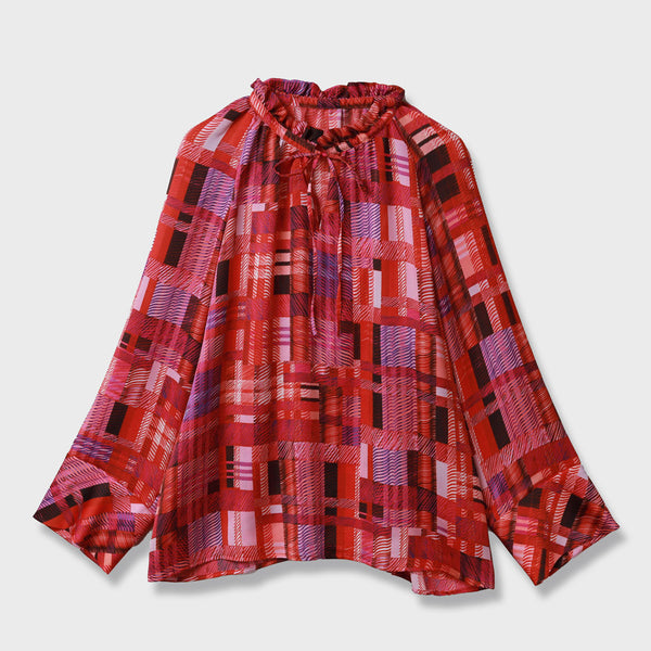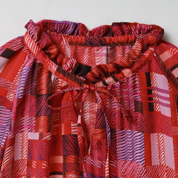チェックをパッチワークのように組み替え、動きのある華やかな印象に仕上げました。