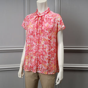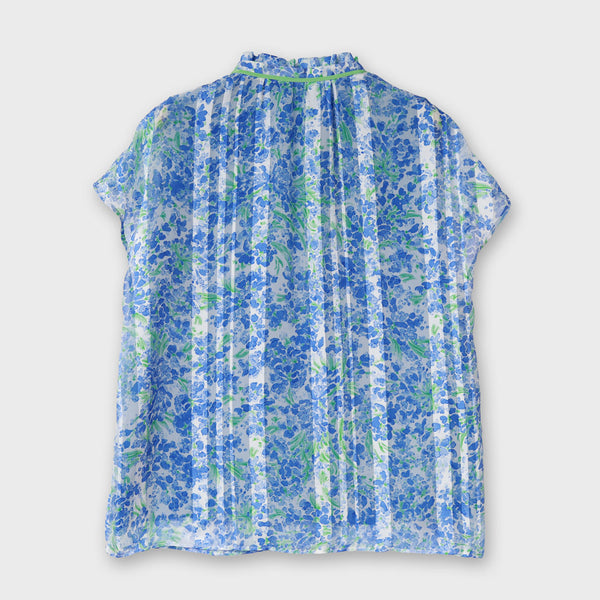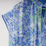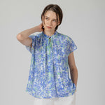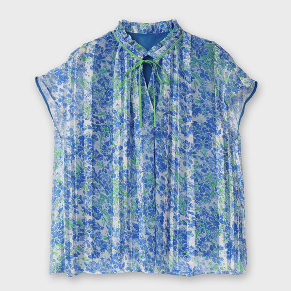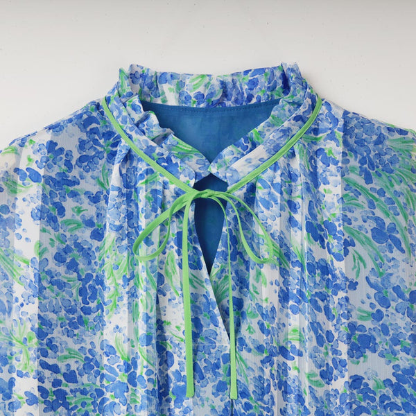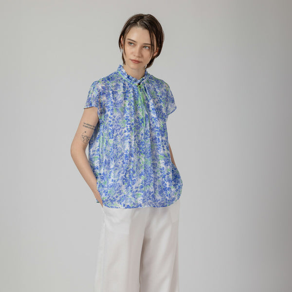 フェミニンなイメージのアート調のフラワープリントにピッタリなブラウスをデザインしました。