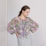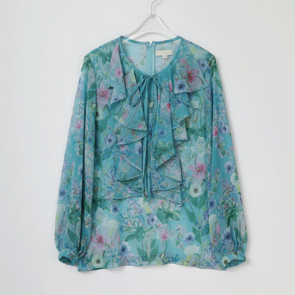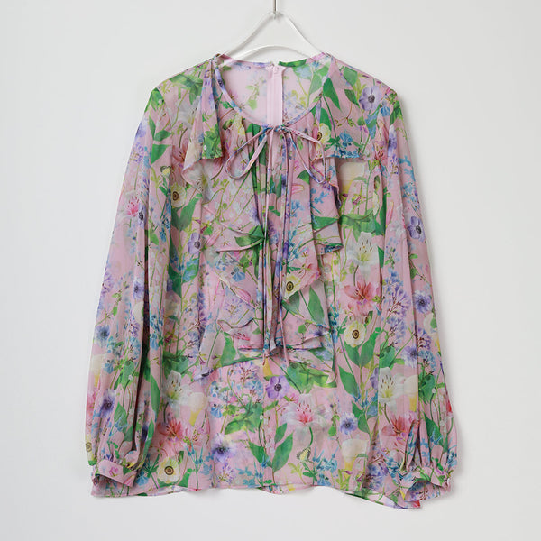 Fresh Color Options フラワープリント ラッフル ブラウス