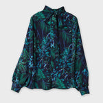 リボンは後ろで結んでロールカラーにしたり前でリボンにしたり、体のラインが気にならず、リラックス感がありながらきちんと見えするブラウスです。