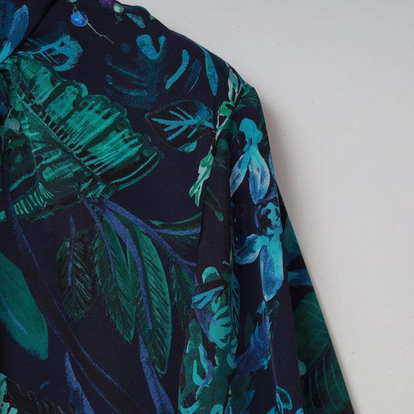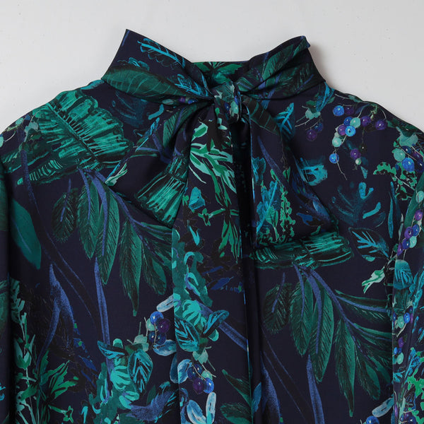 生地は、福井産のシルクライクなポリエステルで、程良い落ち感と反発感を兼ね備えた素材にプリントしました。