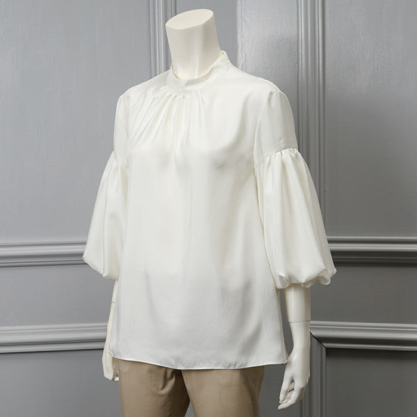 バルーンスリーブがポイントのブラウス。