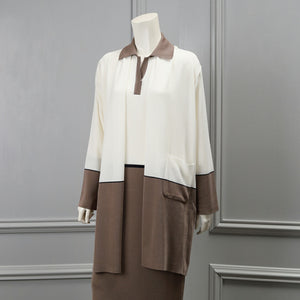 ポケットも付け、お尻がしっかり隠れる丈にしていますので、軽いアウター感覚でコートの前に活躍するアイテムです。