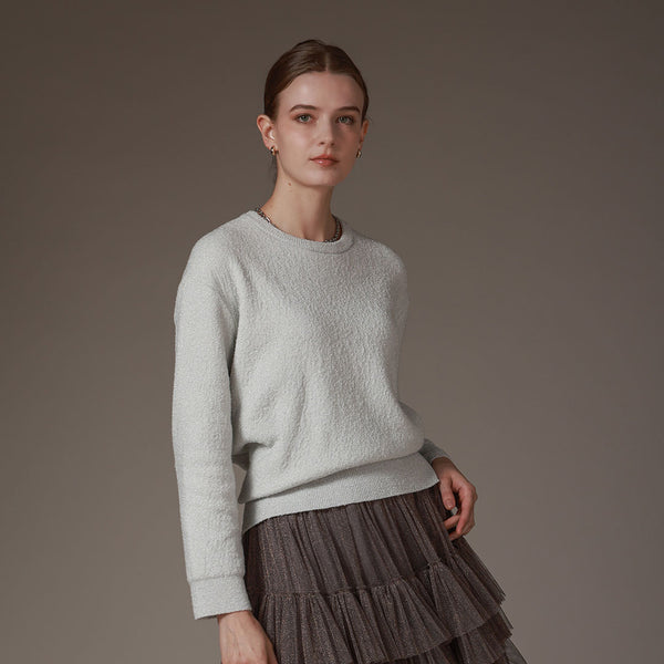 一般的なスウェットとは違い、全面細かなラメを使用している為カジュアルでありながら華やかさもある1枚です。