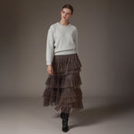 ボリュームスカートと合わせればカジュアルダウンしたデイリースタイルが完成します。