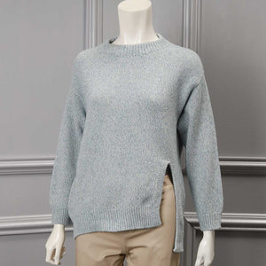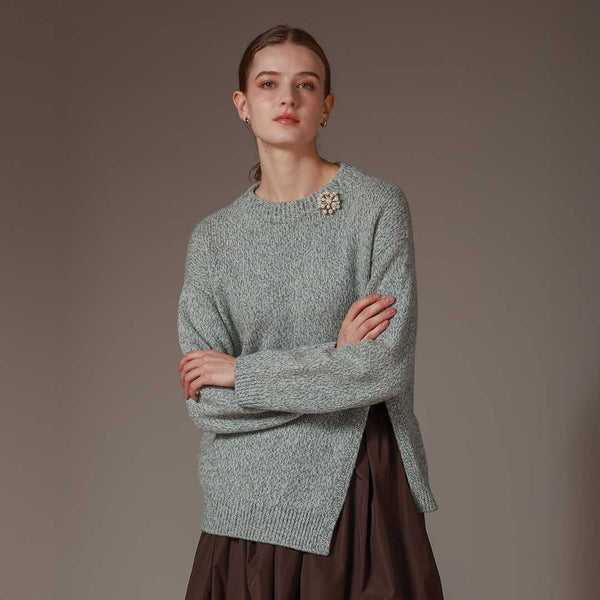 毛100%の細番紡毛糸を3色5本MIXしたオリジナルカラーのニットです。