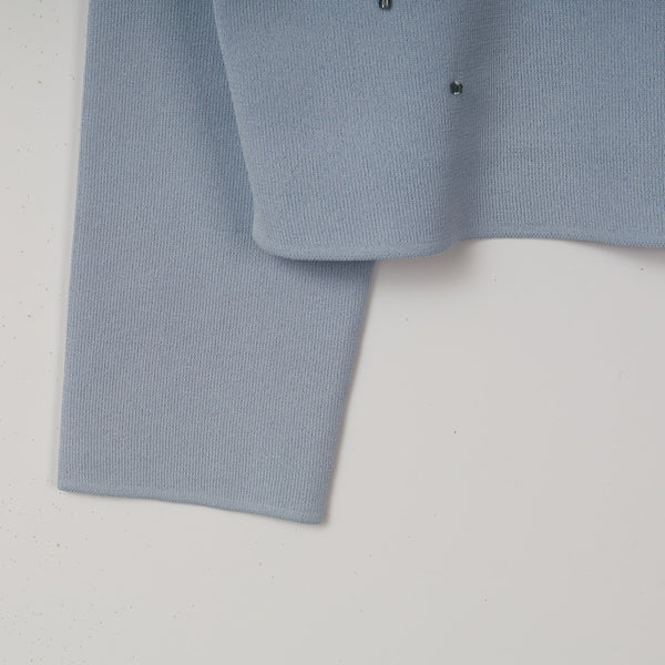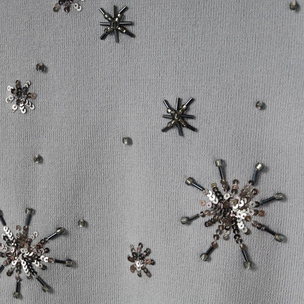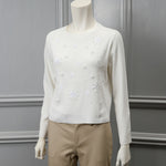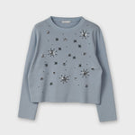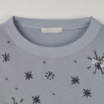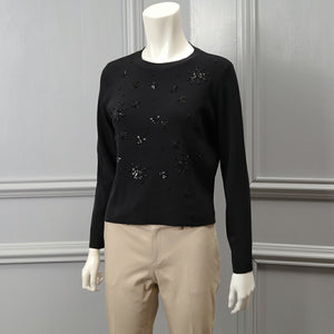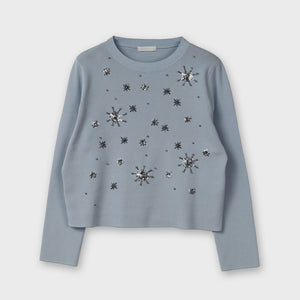 前身頃に施されたビジューが華やかなプルオーバーニットです。