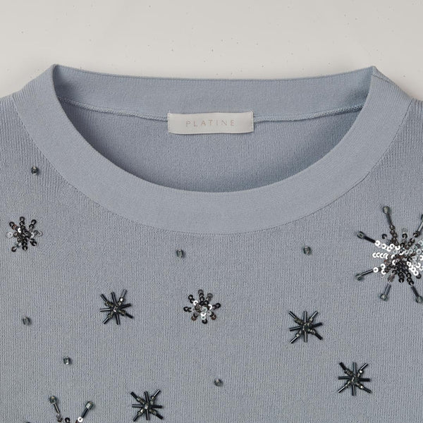 PLATINE Shiny bijou Knit クルーネック プルオーバー