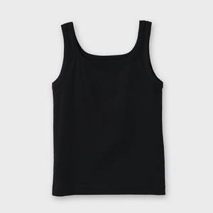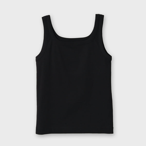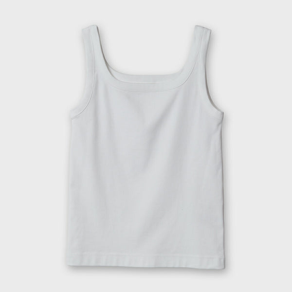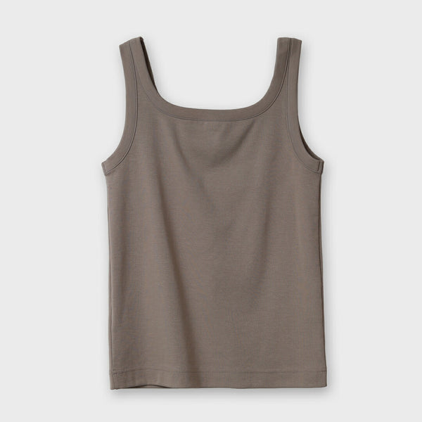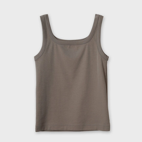 衿元が、スッキリとしたスクエアネックのタンクトップ。