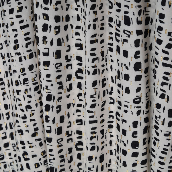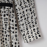幾何学模様がミックスされたような柄行が、甘すぎずシックでモダンな印象を与えます。