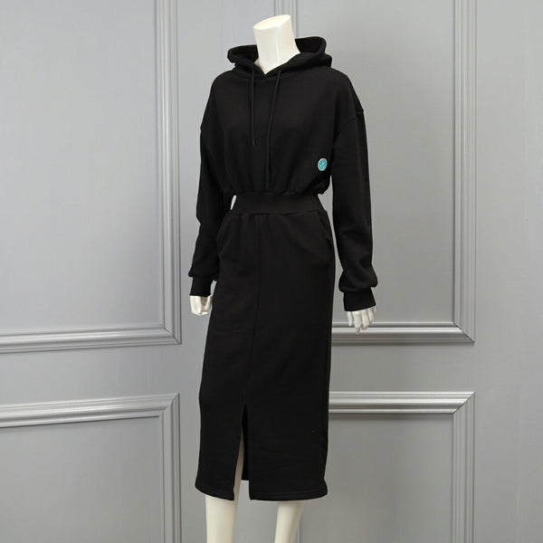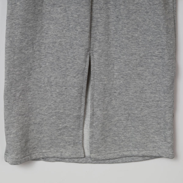 しっかりとした裏毛素材。フロントスリット入りでタイトなシルエットながらも足捌きもよいです。