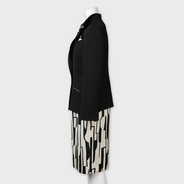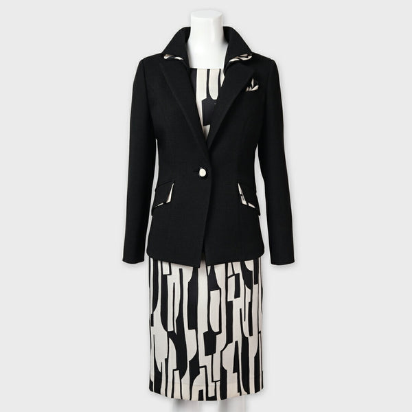 モードな雰囲気を纏う、ジャケットとワンピースのセットアップです。