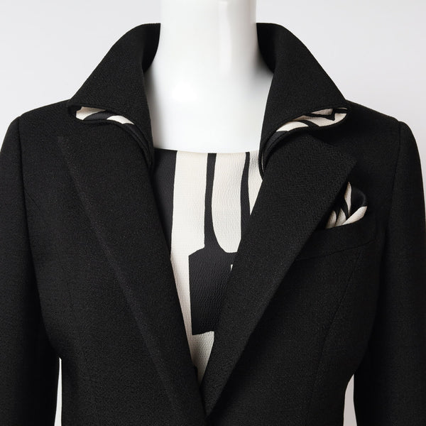 シンプルなブラックが、インナーの柄を際立たせつつ全体を引き締めます。
