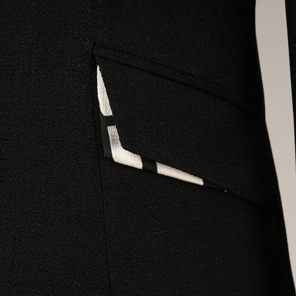 襟元から裾にかけてのシャープなカッティングが、洗練された大人の女性を演出します。