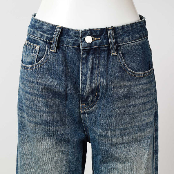 程よいウォッシュ加工が施されたデニム生地は、どんなトップスにも合わせやすく、洗練された大人の着こなしを演出します。