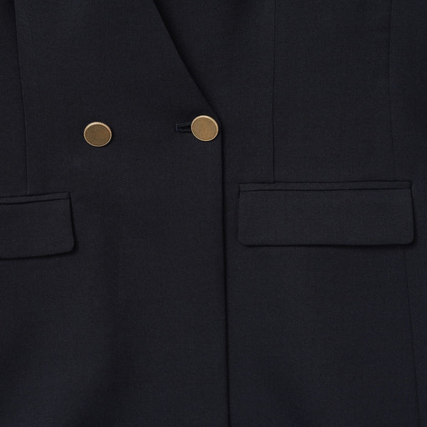 なめらかな生地と上品なゴールドボタンが、どんなコーディネートも格上げします。