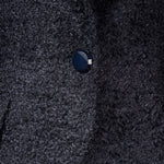 丸みのあるテーラード襟とシェイプされたウエストラインが女性らしさを強調します。