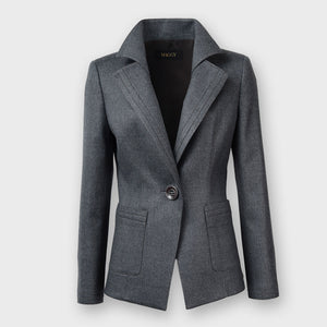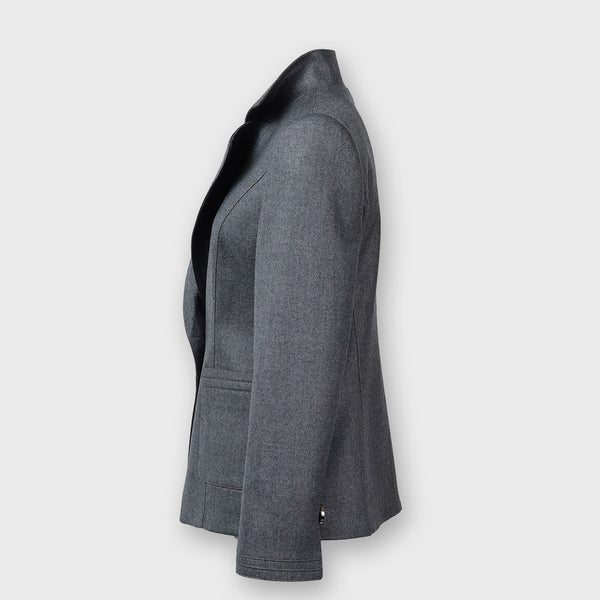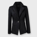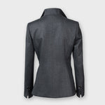 シャープな印象がありつつも、ウエストラインや釦など女性らしい雰囲気を醸し、ビジネスシーンやオケージョンシーンでも活躍します。