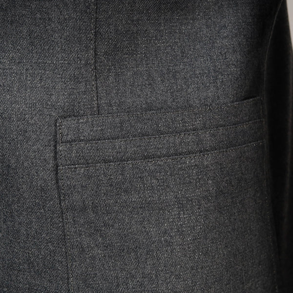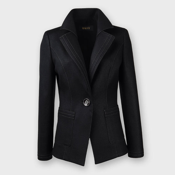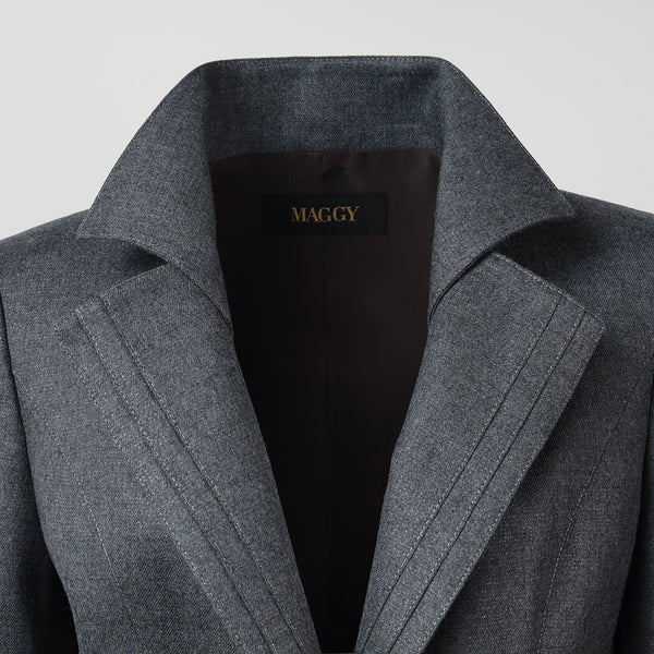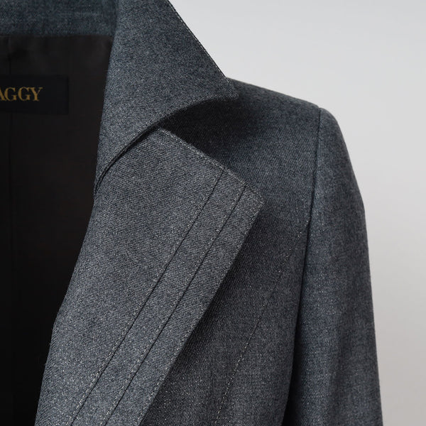 衿とポケット部分に施されたラメステッチがポイントのテーラードジャケットです。