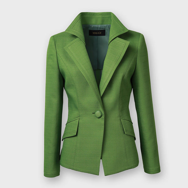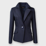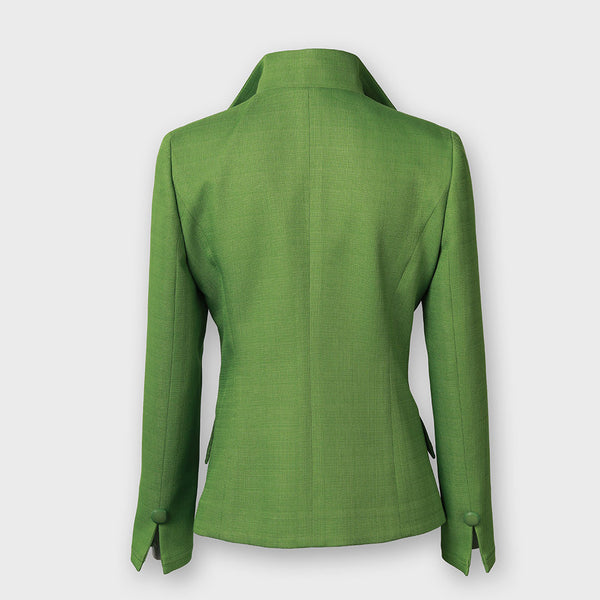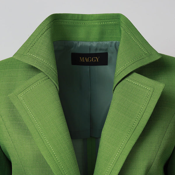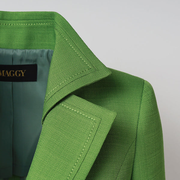 シャープな印象がありつつも、ウエストラインや釦など女性らしい雰囲気を醸し、ビジネスシーンやオケージョンシーンでも活躍します。