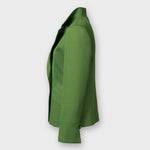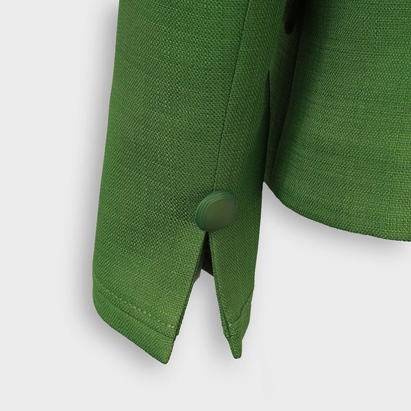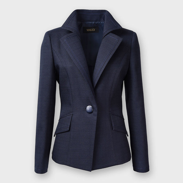 衿とポケット部分に施されたステッチがポイントのテーラードジャケットです。