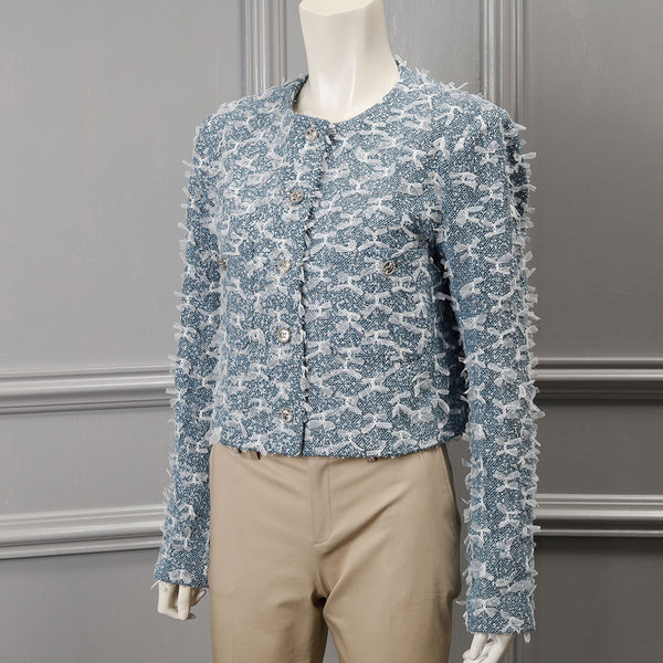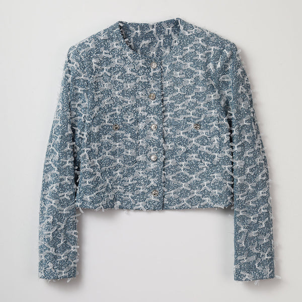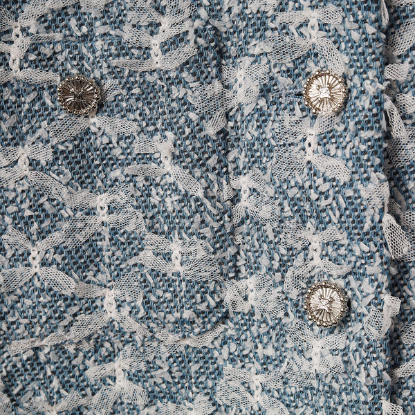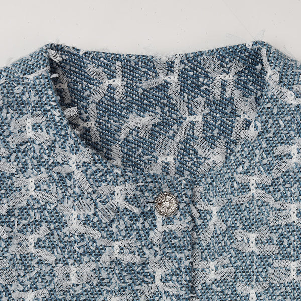 パワーネットを使用したリボンモチーフが、全体的に散りばめられたツイードジャケットです。