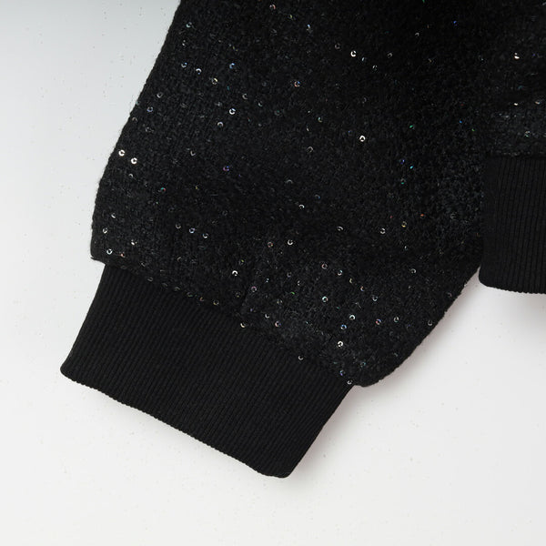 ラメ糸とスパンコールを織り込むことで、動くたびに上品なきらめきを放ちます。