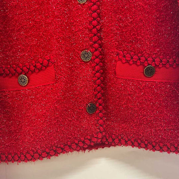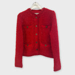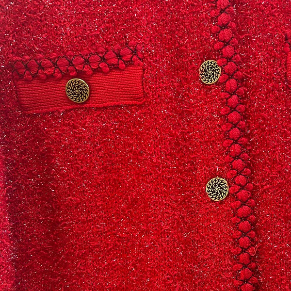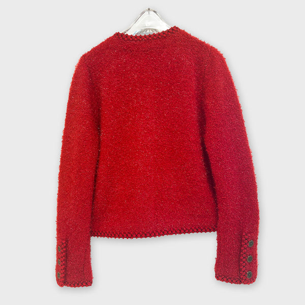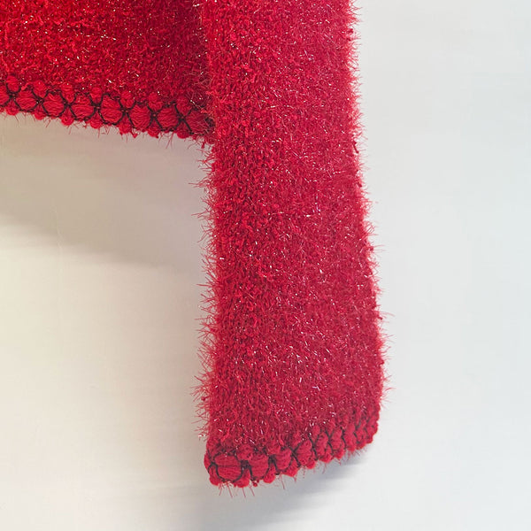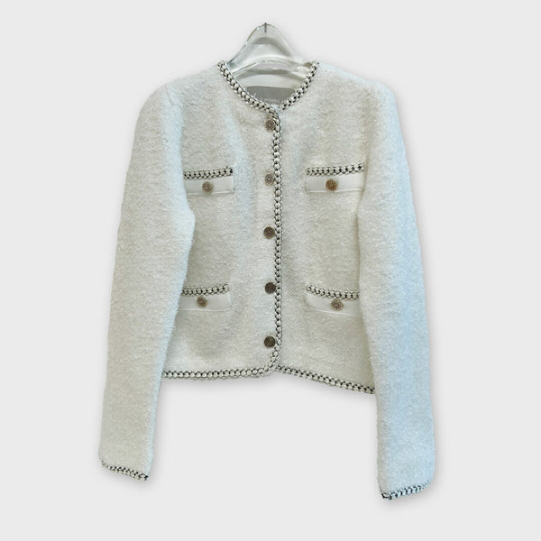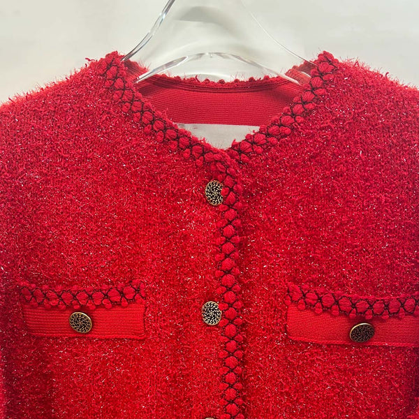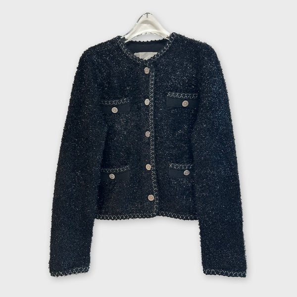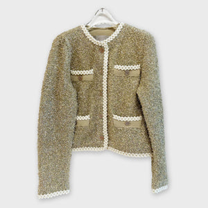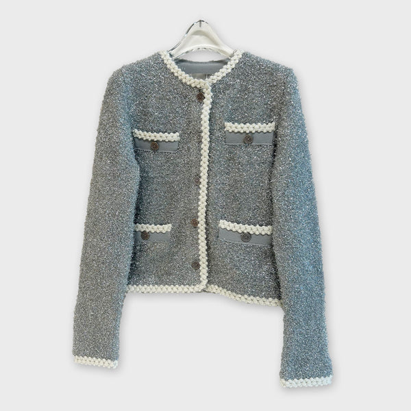 ラフィルムヤーンを使用し光沢を表現しているニットジャケットです。