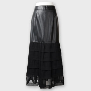【手洗い可】フェイクレザー ドッキング ティアード スカート