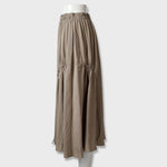 ウエストのギャザーから生まれる豊かなドレープが美しいロングスカートです。