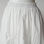 ウエストゴムでリラックスした穿き心地ながら、立体的なフォルムが個性的な印象を演出します。