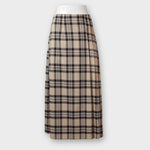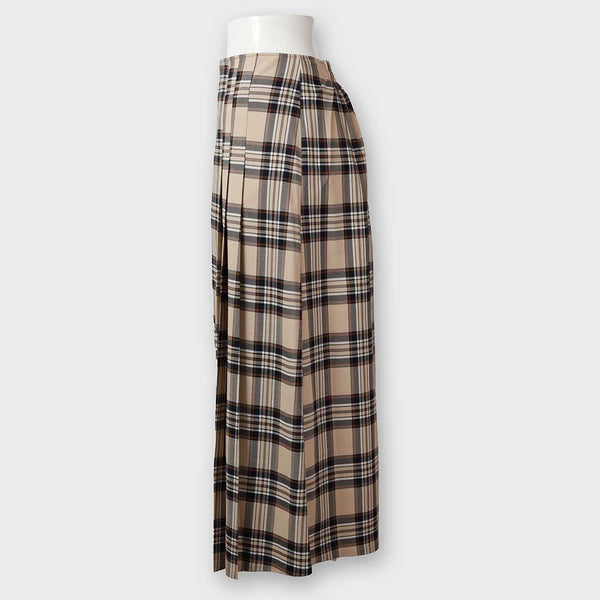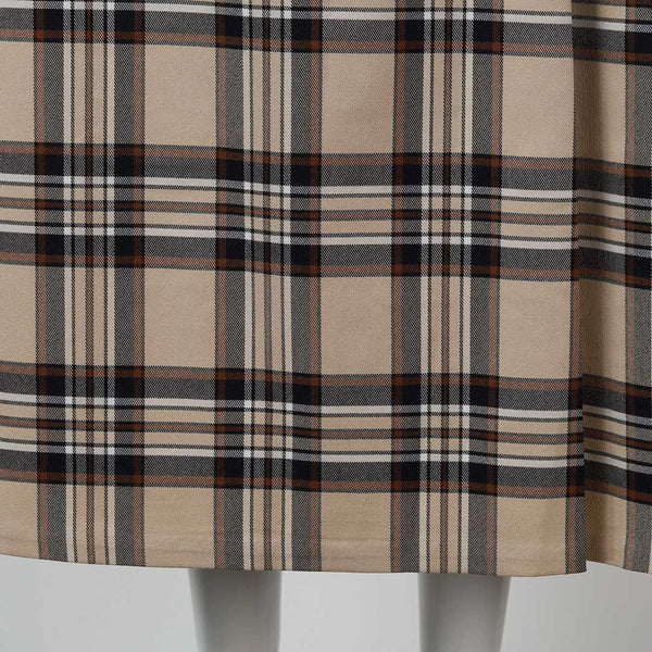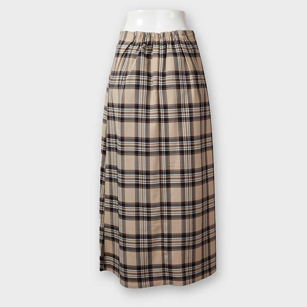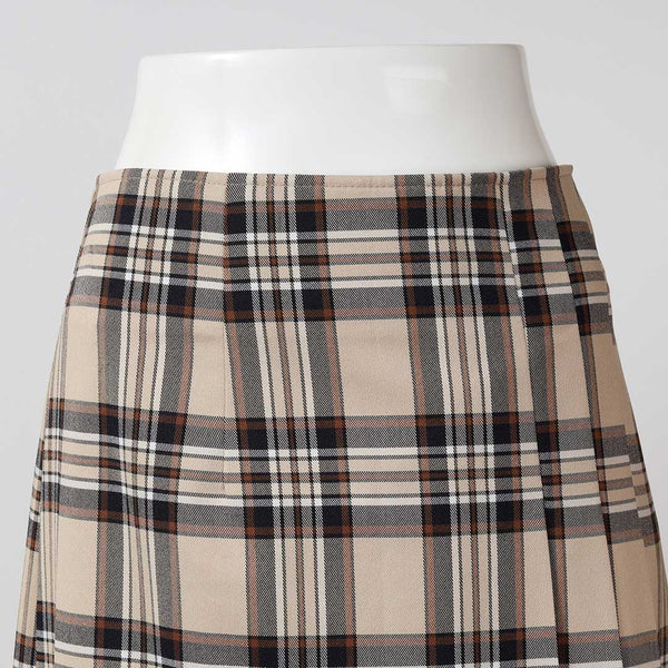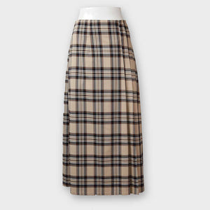 クラシックなチェック柄に、デザイン性の高いプリーツを組み合わせたミディスカートです。