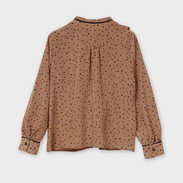 【手洗い可】星柄プリント フリルブラウス