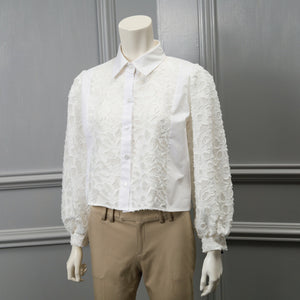 立体感のある表情豊かなカットジャガード素材を使用した透け感のあるアイテム。