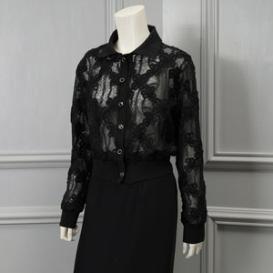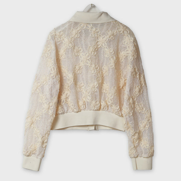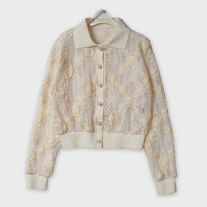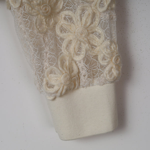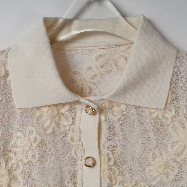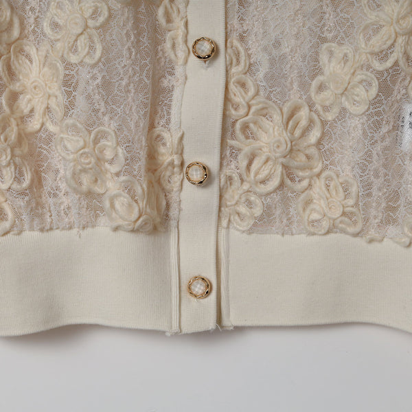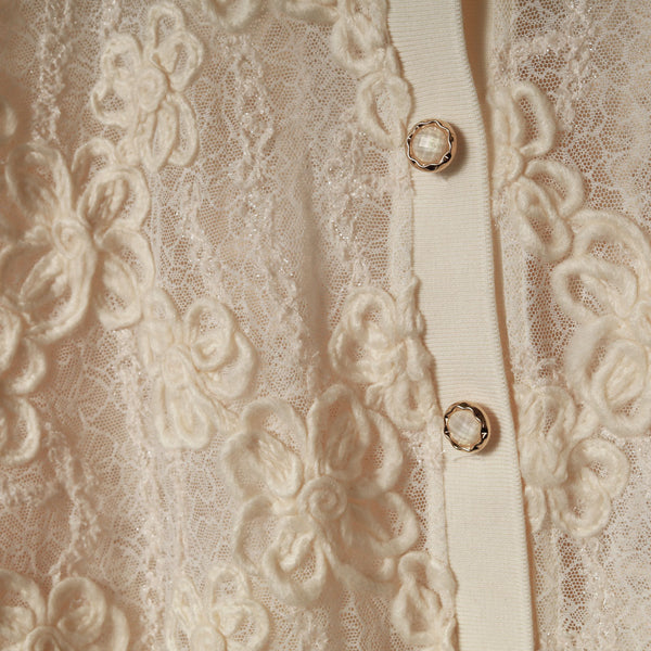 立体感のあるフラワーレースと、上品な透け感が魅力の華やかな一枚です。