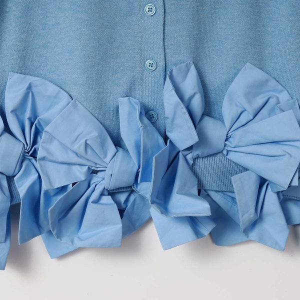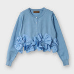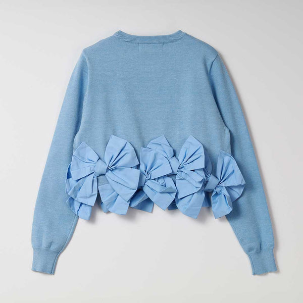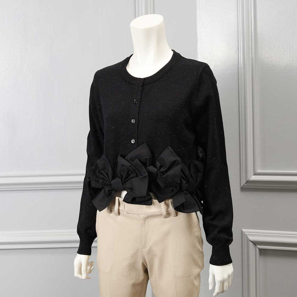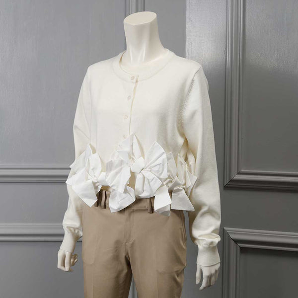大振りのリボンが目を引く、華やかなクルーネックカーディガンです。