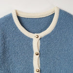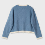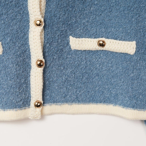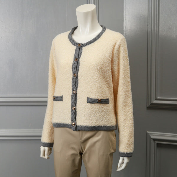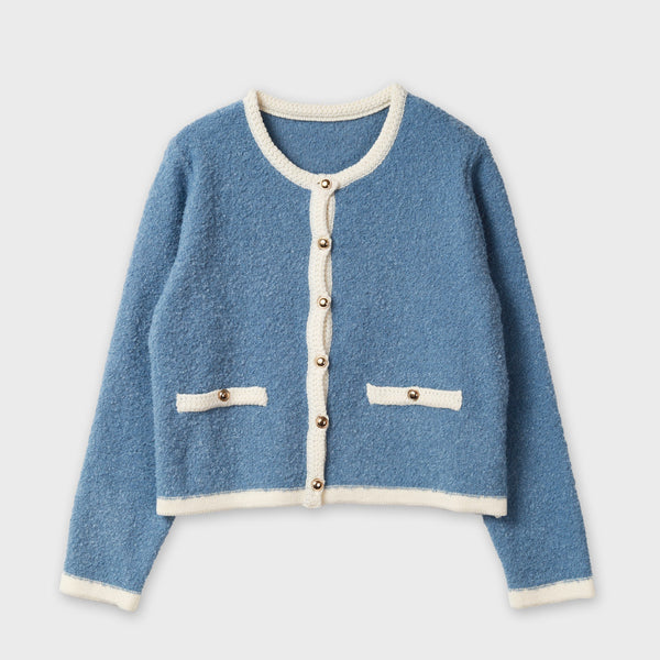 編み込みのパイピングとゴールドボタンが上品なアクセントを添える一着です。