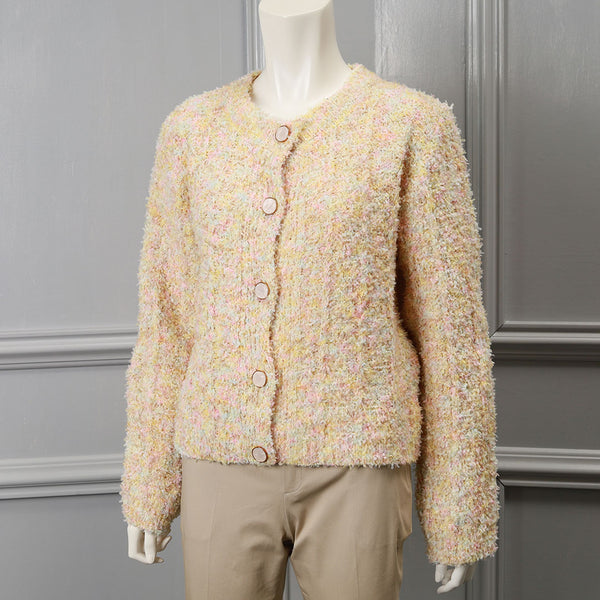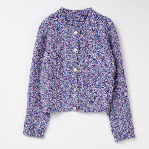 ウォーム感のある糸を使用した大人かわいいカーディガン。